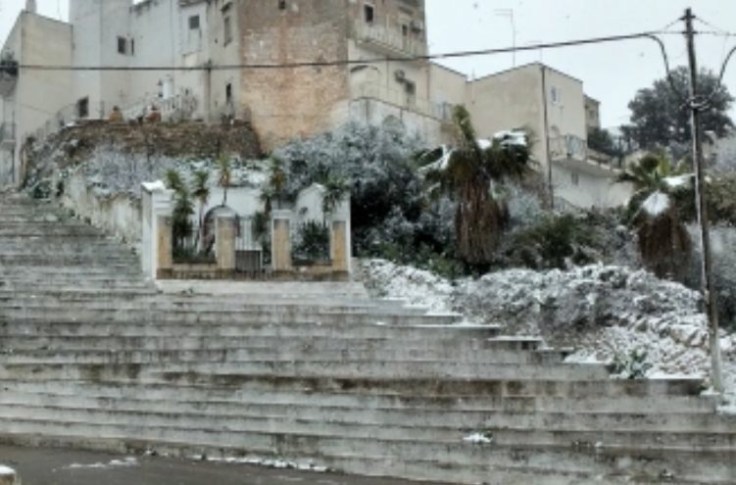 La scalinata fu originariamente costruita intorno al 1884 (i lavori furono portati avanti dal maestro muratore Cosimo Sergi detto “centèsim¿”) a seguito della missione dei Padri Passionisti, che a metà del ciglione di Monte Castello incastonarono una croce.