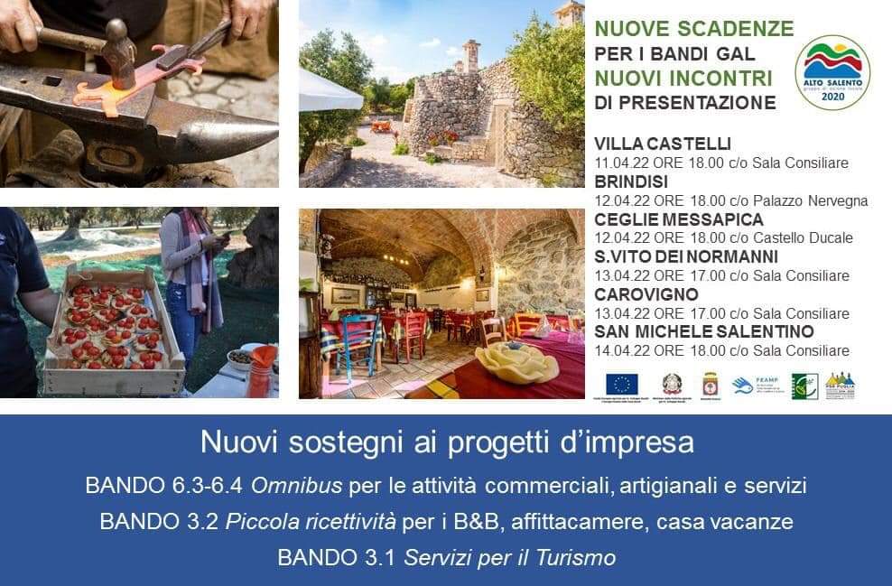 Il Gal Alto Salento torna a Villa Castelli per un nuovo incontro di presentazione dei bandi a sostegno di attività commerciali, artigianali, e servizi e per i B&B, affittacamere, case vacanze e servizi per il turismo.