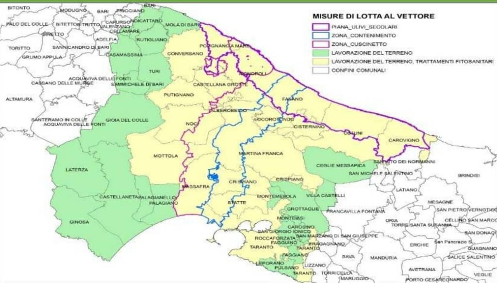 Riassumendo, le azioni da compiere tra il 10 marzo e il 15 maggio riguardano l’eliminazione della vegetazione erbacea su tutte le superfici AGRICOLE, EXTRAGRICOLE, PUBBLICHE, PRIVATE mediante aratura, fresatura o trinciatura. Su terreni impervi/rocciosi il diserbo con mezzi fisici (fuoco/vapore) o, come ultima alternativa, il diserbo chimico. La misura è OBBLIGATORIA nei comuni ricadenti nelle AREE VERDI E GIALLE della mappa, ovvero sul fronte dell’epidemia.