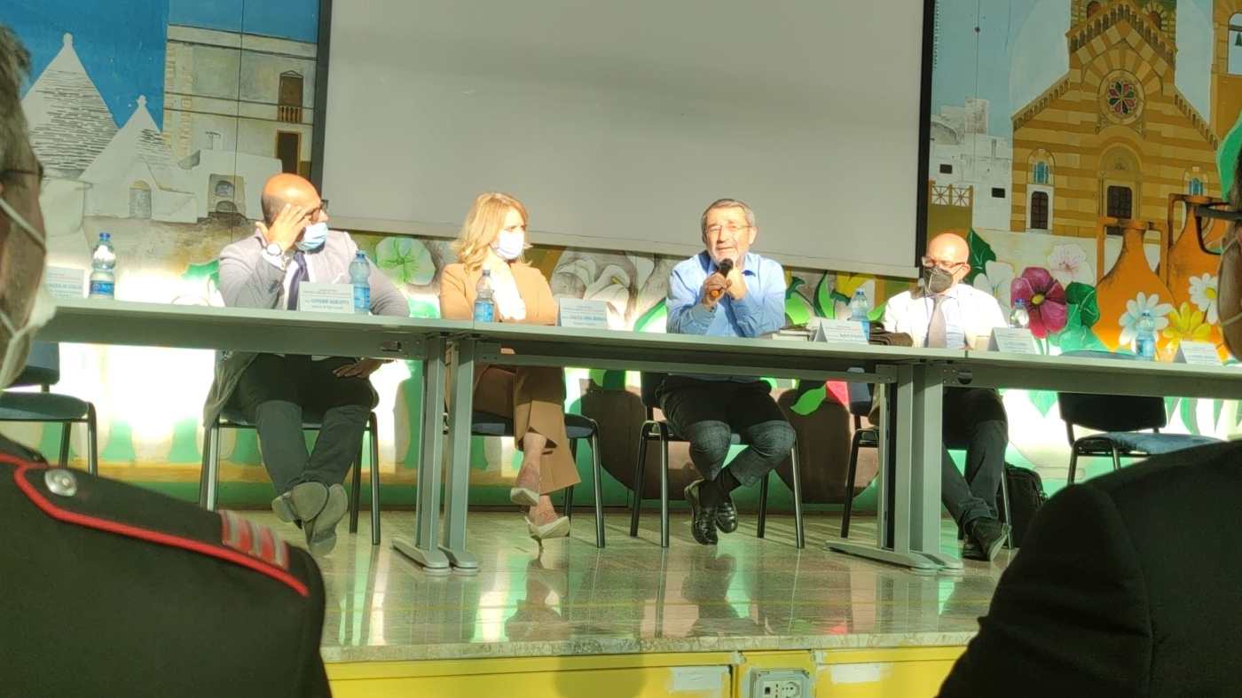 Alla presenza della Dott.ssa Grazia Anna Monaco dirigente dell’Istituto Comprensivo, del Dott. Vito Alfonso Provveditore agli Studi di Brindisi e Taranto, del Sindaco di Villa Castelli Rag. Giovanni Barletta, di Don Antonio Andriulo Parroco della Chiesa San Vincenzo de’ Paoli, ha relazionato il Dott. Marco Di Napoli Magistrato Emerito già Procuratore Capo della Procura del Tribunale di Brindisi.