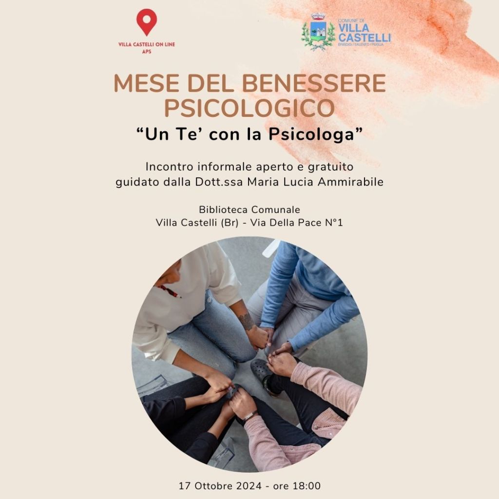 𝗟’𝗮𝘀𝘀𝗼𝗰𝗶𝗮𝘇𝗶𝗼𝗻𝗲 𝗱𝗶 𝗣𝗿𝗼𝗺𝗼𝘇𝗶𝗼𝗻𝗲 𝗦𝗼𝗰𝗶𝗮𝗹𝗲 Villa Castelli On Line Aps , 𝗶𝗻 𝗼𝗰𝗰𝗮𝘀𝗶𝗼𝗻𝗲 𝗱𝗲𝗹 𝗠𝗲𝘀𝗲 𝗱𝗲𝗹 𝗕𝗲𝗻𝗲𝘀𝘀𝗲𝗿𝗲 𝗣𝘀𝗶𝗰𝗼𝗹𝗼𝗴𝗶𝗰𝗼, 𝗼𝗿𝗴𝗮𝗻𝗶𝘇𝘇𝗮 “𝗨𝗻 𝘁𝗲’ 𝗰𝗼𝗻 𝗹𝗮 𝗣𝘀𝗶𝗰𝗼𝗹𝗼𝗴𝗮”.