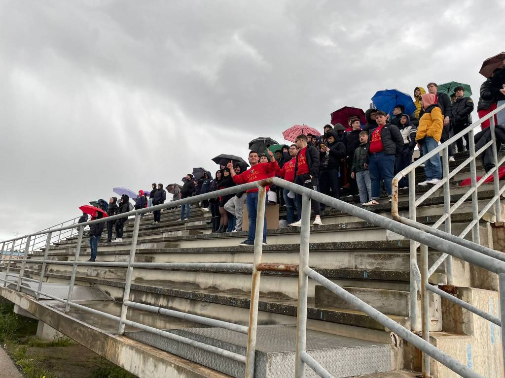 Una partita giocata completamente sotto la pioggia che ha visto la tifoseria ospiti assistere al match con ombrelli alla mano e l’immancabile supporto alla squadra giallorossa.